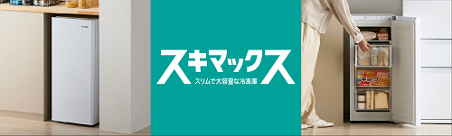 「スキマックス」は、2024年に「隙間(スキマ)に収まる」「大容量(マックス)」をコンセプトに発売した、ファン式のスリム冷凍庫シリーズです。昨今の物価高に伴う節約志向により、冷凍食品のまとめ買いやふるさと納税の返礼品、料理の作り置きを冷凍保存したいというセカンド冷凍庫に対するニーズが高まっています。