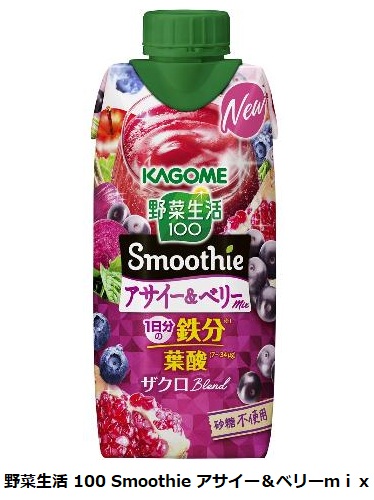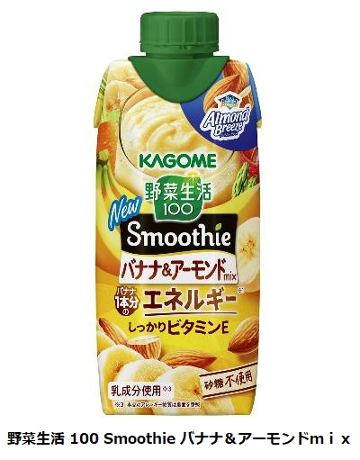 カゴメ株式会社(社長 : 奥谷晴信、本社 : 愛知県名古屋市)は、「野菜生活100 Smoothie アサイー&ベリーmix」を2月3日(火)、「野菜生活100 Smoothie バナナ&アーモンドmix」を3月24日(火)に新発売いたします。また、定番の「野菜生活100 Smoothie グリーンスムージー」を、2月下旬よりリニューアル発売いたします。