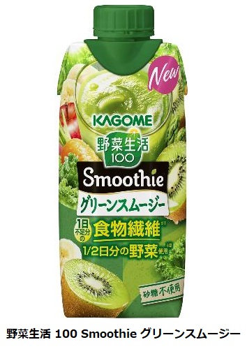 このたびリニューアルする「野菜生活100 Smoothie グリーンスムージー」は、1/2日分(※4)の野菜を使用し、1日不足分の食物繊維(※5)が摂れます。口いっぱいに広がるグリーンキウイの優しい甘さとほのかに感じる葉野菜の爽やかな香りをお楽しみください。