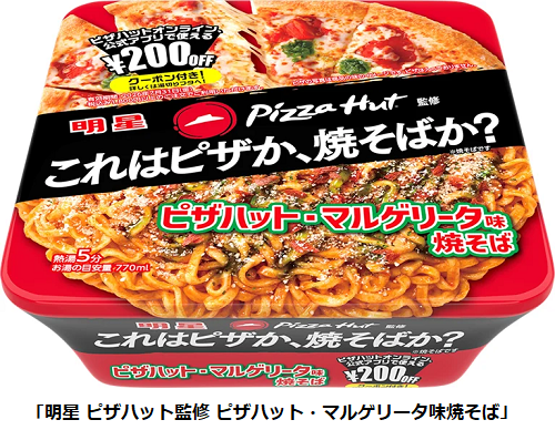 日本ピザハット、明星食品とのコラボ商品「明星 ピザハット監修 ピザハット・マルゲリータ味焼そば」を発売