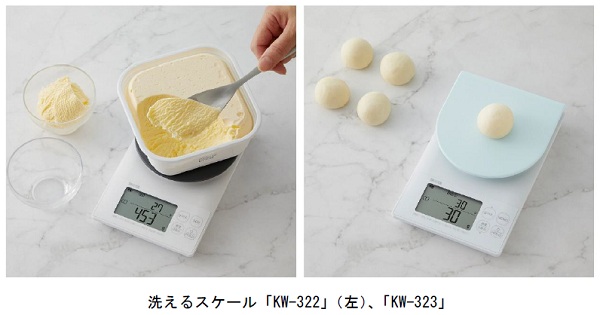 洗えるデジタルクッキングスケール「KW-322」「KW-323」を2月5日に発売