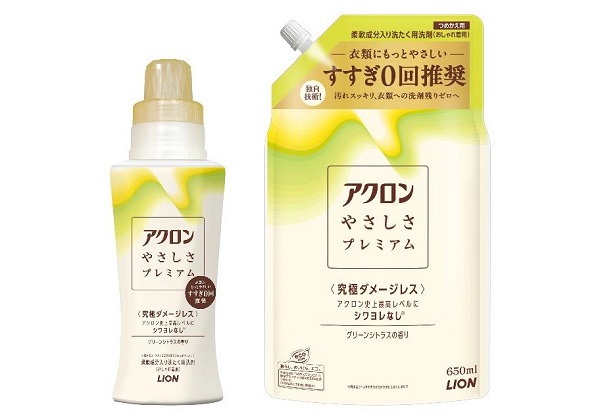 ライオン、柔軟成分入り洗濯用洗剤(おしゃれ着用)「アクロンやさしさプレミアム」を発売