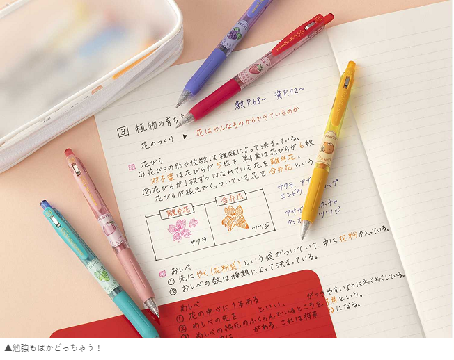 シンプルでかわいいデザインと、フルーティーな香りがするインクで勉強もはかどっちゃう!