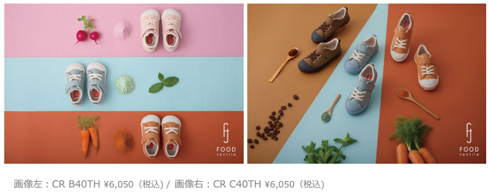 株式会社ムーンスター(本社:福岡県久留米市/東京オフィス:東京都中央区八丁堀、代表取締役社長:井田祥一)は、MOONSTAR Carrot(R)のブランド誕生40周年モデルの第一弾として、豊島株式会社(所在地:名古屋市中区、代表:豊島半七)が展開する規格外の食材を染料として再活用するプロジェクトブランド『FOOD TEXTILE(フードテキスタイル)』をアッパーに使用した国産の子ども靴「CR B40TH」と「CR C40TH」を2025年2月中旬より全国の靴専門店・量販店、子ども靴専門店「ゲンキ・キッズ」、ムーンスター公式オンラインストア及びECモールで順次販売します。