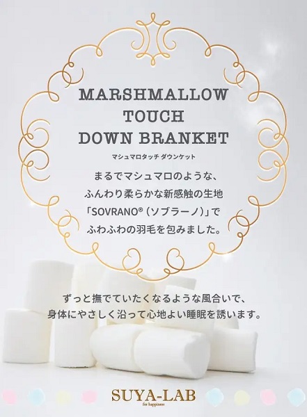 【昭和西川】まるでマシュマロみたい!ふわふわ感で快適な素材、『ソブラーノ(R)』使用の羽毛肌掛けふとんがスヤラボより登場!