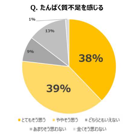近年、若年層からシニア層まで幅広い年代でたんぱく質の需要が高まっており、普段の食事からたんぱく質を摂取できる大豆加工品市場は年々増加傾向にあります。しかし、大豆市場は拡大しているものの、現代人の1日におけるたんぱく質摂取量は男女とも目標量に達しておらず、その中でも朝食時に摂取するたんぱく質が不足していると言われています。実際に当社が行ったアンケート調査(※)では、7割以上の方が「朝ごはんのおかずについてたんぱく質不足を感じる」と回答しました。1回の食事で体内に吸収できるたんぱく質の量には限度があるため、朝昼夜の食事でバランス良くたんぱく質を摂取することが大切です。