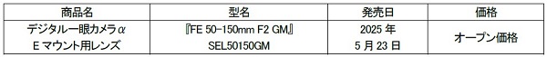 単焦点に迫る描写性能で被写体を際立たせるGマスター(TM)『FE 50-150mm F2 GM』発売