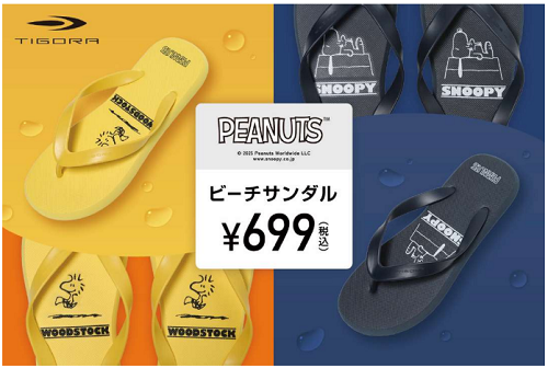 アルペン、「TIGORAビーチサンダル」と「PEANUTS」ブランドがコラボした限定デザインのビーチサンダルを発売