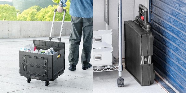 【収納革命】たたむとたったの11cm!専用コンテナ付き折りたたみ台車を発売