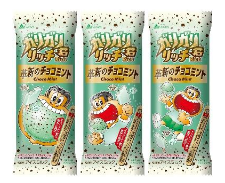 「ガリガリ君リッチ革新のチョコミント」は、ミントアイスの中に、チョコチップ入りのミントかき氷を入れたアイスキャンディーです。アイスミルク規格で、ミルクの美味しさもお楽しみいただけます。
