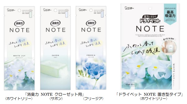 エステー、「消臭力 NOTE クローゼット用」と「ドライペット NOTE 置き型タイプ」を発売