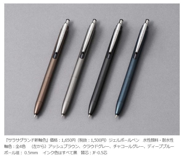 ジェルボールペン「サラサグランド」新軸色