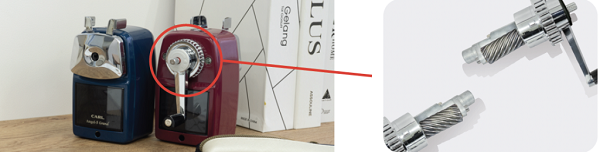 今回、機械式鉛筆削りの心臓部であるスパイラル刃から自社工場で生産する態勢を整え、『エンゼル5』をリニューアル。飽きの来ない完成されたフォルムと優れた実用性を兼ね備えた鉛筆削りを引き続きご提供します。