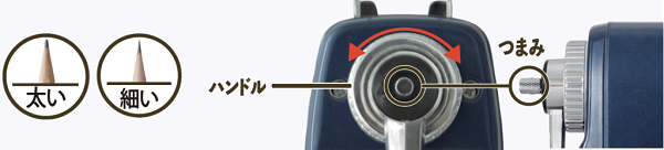 ハンドル部分のつまみを回してお好みの芯の長さに調節できます。(目安0,5mm〜0.9mm)。