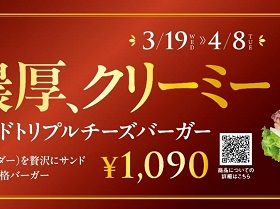 発表日:2025年03月12日春定番アボカドフェアに新たなる主役が降臨!フレッシュネス史上、最濃厚!最クリーミー!3種チーズの旨みで完熟生アボカドを堪能する新作登場クラシックアボカドトリプルチーズバーガー2025年3月… -