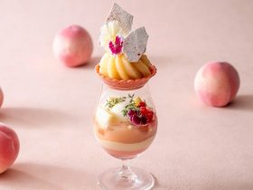 発表日:2025年05月30日可愛らしい桃パフェの中で、重なり合うスイーツの層 ひと匙ごとに異なる食感と味わいが楽しめる「パルフェ ペッシュ〜桃のパフェ〜」7月14日から ヨコハマ グランド インターコンチネンタ… -